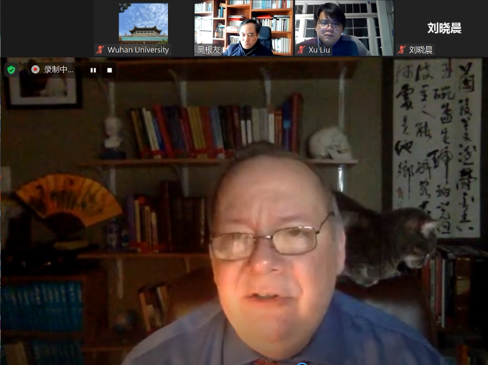 接下来,吴根友教授继续就现实的国际状况提问万百安教授,问题关于当今国际事务中,中国应该扮演什么样的角色?万百安教授心中期待的中国是怎样的?万百安教授认为当今中国已经和美国一道成为世界上的两个超级大国,而相较于美国,他认为中国的优势在于植根儒家传统的社群主义政治哲学和对知识分子、文化成就的尊重。进而,万百安教授以新冠疫情举例,他认为中国民众听取专家建议,采取措施齐心为共同利益合作,而美国民众以为自身比专家更了解疾病拒绝采取防疫措施。这一点恰如托克维尔对美国民众的评价:“每个人都从自我封闭的小圈子来判断世界”。万百安教授指出这种个人主义观点曾给美国带来巨大的创新,但当下也给美国带来巨大的危机。