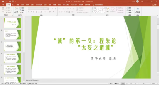 清华大学的蔡杰博士做了题为《“诚”的第一义:程朱论“无妄之谓诚”》的学术报告。他通过对程颐“无妄”的分析,指出“无妄”是从天道的高度对“诚”的把握,而“不欺”属于人道的范畴,“无妄”和“不欺”的区别实际上是天道和人道的区别。朱子在“无妄”的基础上增加“真实”来定义“诚”是为了强调实理的重要性,肯定万物的实有性,并由此拒斥佛老的空无。