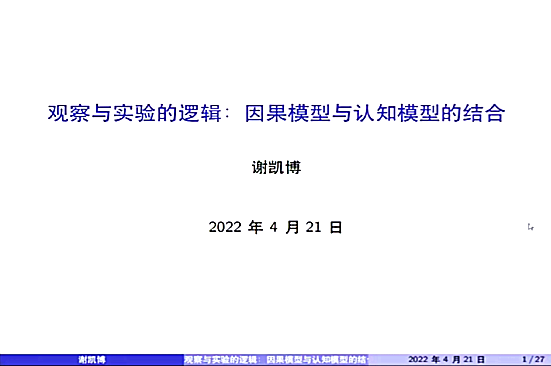 阿姆斯特丹大学博士、清华大学在站博士后谢凯博做了题为《观察与实验的逻辑:因果模型与认知模型的结合》的学术报告。他从基于信息更新的推论与基于反事实干预的推论在意义上具有显著的差别入手,通过讨论刻画信息更新的认知模型和刻画反事实干预的因果模型,提出了认识与因果相嵌套的逻辑模型和逻辑语言。