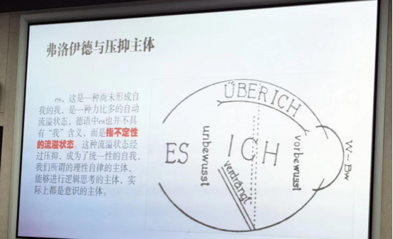 正如弗洛伊德在其精神分析学说中表明的那样,蓝江教授言道,Es(本我),其德语原意起初其实就是“它”,即尚未形成自我的“我”,它只是一种力比多的自动流溢,进而这种流溢状态经过压抑,才成为了统一性的自我(ich),那个所谓的理性自律的自我。为此,在历史上的许多思想家看来,存在着这样一种可能,甚至只有退回那样的一种混沌的——依照德勒兹的说法,“白痴一样”的状态,才能够挣脱“装置”的束缚,并由此重新开启“流溢”的经过,从而重新流溢出新的主体。