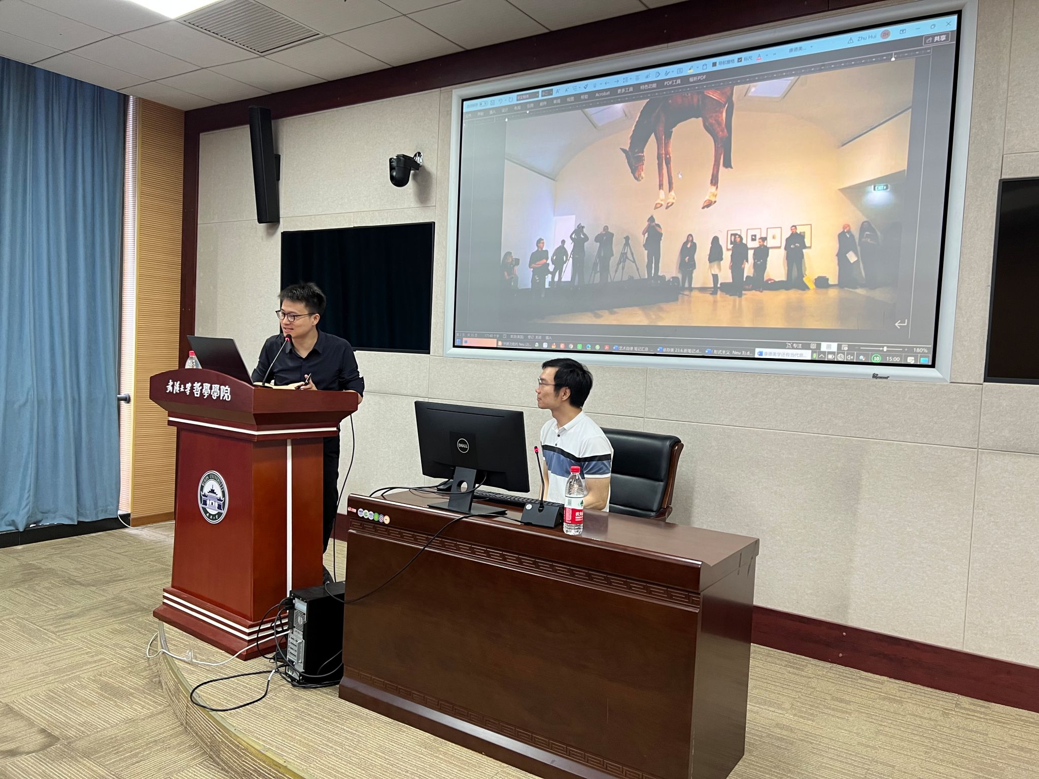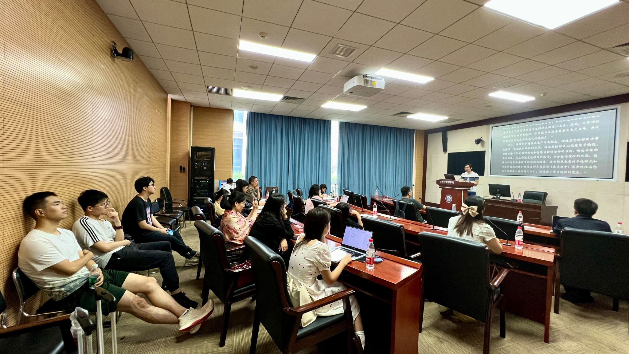 互动环节中,朱会晖教授就王维嘉副教授、贺念副研究员、王咏诗副研究员、李日容副教授及在场其他师生提出的关于“艺术究竟是有目的的还是无目的的?”“理性理念是否内在地参与了作为其标志的感性形象的美?”、“感性形象对理性理念的类比和象征是否像批评家对艺术作品意义的解释一样是开放的?”、“是否可能在康德体系内找到一种‘理性理念的审美运用’?”、“作品的文化背景、创作者的创作思想等理念的参与造成的审美体验变化是否证明了理念的参与对形式的独立性的损害?”等问题开展了充分交流讨论。