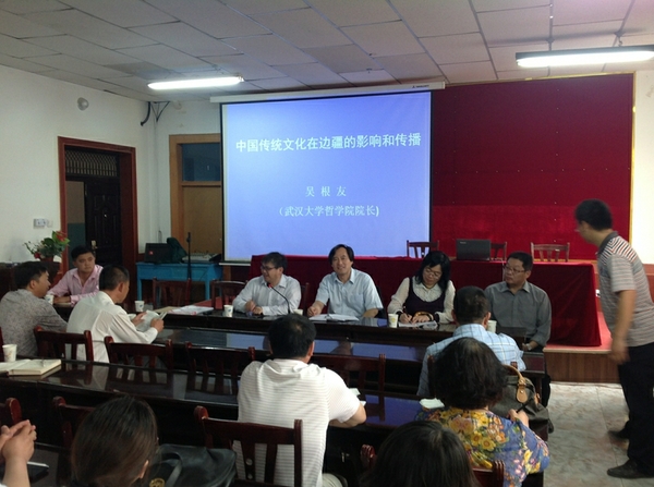 5月7日,吴根友教授为阿拉尔市塔里木大学党委中心学习组的100余名成员(主要是校领导和中层干部)做了主题为“文化安边”的专题报告,着重从中国传统文化的普及与传播角度,系统阐释了文化认同对于民族认同、国家认同的重要意义,提出以“文化安边”取代“文化戍边”的新思路。