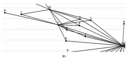 调用“齐物智算”模型进一步构造思想文本的动态概念网络,能对“务为治”的特征作出更细粒度的展示。比如在聚类簇13中,“天子”构成了所有概念的核心节点,“德”则通过与以“文王”为节点的概念社区相连而关联于“天子”(图3),这不仅印证了政治领域是当时思想界的核心关切,还间接显示出“德”概念的政治内涵与西周的政治文化有关。如后所见,“德”与“文王”的连接最早就出现在《诗经》《尚书》等西周文献的概念网络中,并与权力的传承有关。而在道家尤其是具有黄老色彩的文本中,亦如后所见,“德”与“文王”的连接在其动态概念网络中有高频度的复现,这是否说明道家对“德”的论说接续了西周的政治文化呢?对此,这至少是一个可讨论的问题。