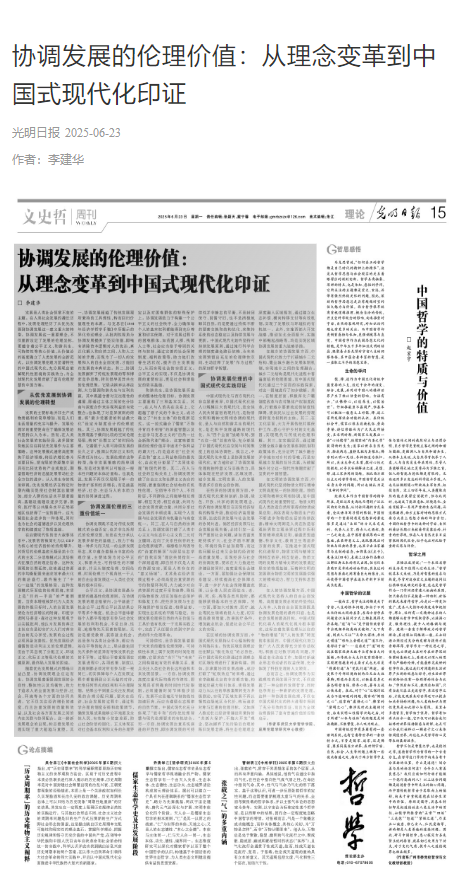【光明日报】李建华|协调发展的伦理价值:从理念变革到中国式现代化印证