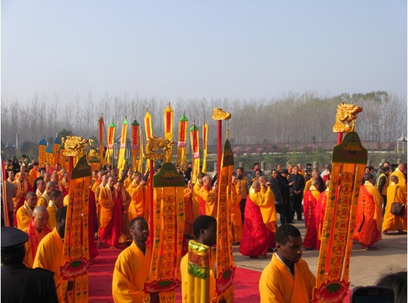 在此次实习期间,我们还恰好遇到了驻马店南海禅寺界承法师的升座大典,于是随白马寺的僧人团一起前往观礼,返回途中又参观了平顶山大香山寺。这些都在我们的实习计划之外,却给了我们意外的收获和惊喜。各地的寺庙由于地域文化和历史沿革的些许差别,都各有自己的特色,比如,南海禅寺的雄伟壮观,以及升座庆典的声势浩大,着实令我们叹为观止;大香山寺依山而建,每到一个殿堂,就要爬一节陡坡,这也令我们感慨良多。作为佛教文化的共同载体,与白马寺一样,这些寺院也都是在努力维护着传统,保持着自身的清净。
