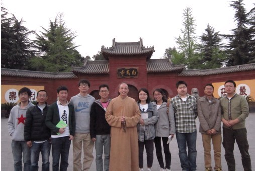 此次实习对我们而言收获最大、意义最深刻的一项活动便是与白马寺方丈——印乐大和尚的亲密座谈。不仅仅是因为,我们了解了白马寺的现状和发展情况,更多的是因为,在交谈中,方丈的处世态度和大智慧深深地感染了我们。于我门而言,与其说是一次交流,不如说是一次聆听,一次感悟。