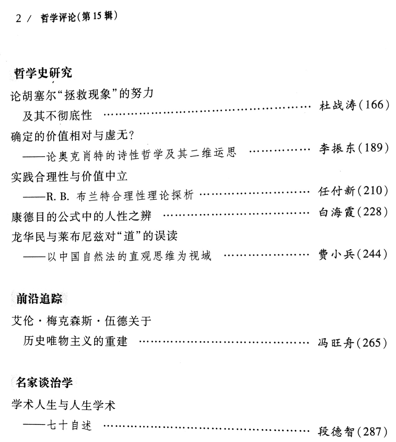 《哲学评论》第15辑目录