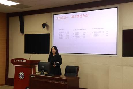 代丹妮老师认真听取学生党支部书记的述职汇报,代表学院对各学生党支部书记一年以来的辛勤工作表示感谢,对各学生党支部工作成果与创新点给予充分肯定,并对各支部下一阶段工作的开展提出四点期望。一是要着眼于实,找准落实“三会一课”制度提质增效方向,立足专业特色,创新活动形式,确保党支部成员取得扎实收获。二是要着力于干,围绕全心全意为人民服务宗旨,充分发挥党支部和党员在服务同学中的模范带头作用,对标优秀支部开展志愿服务等有益活动。三是要着手于管,加强支部组织建设和纪律建设,持之以恒正风肃纪,做到敢管敢严、常管长严。四是要着眼于新,坚持用党的最新理论成功凝心铸魂,落实落细思想政治教育,推动各党支部互帮互学、共勉共进,优势互补、共同发展。