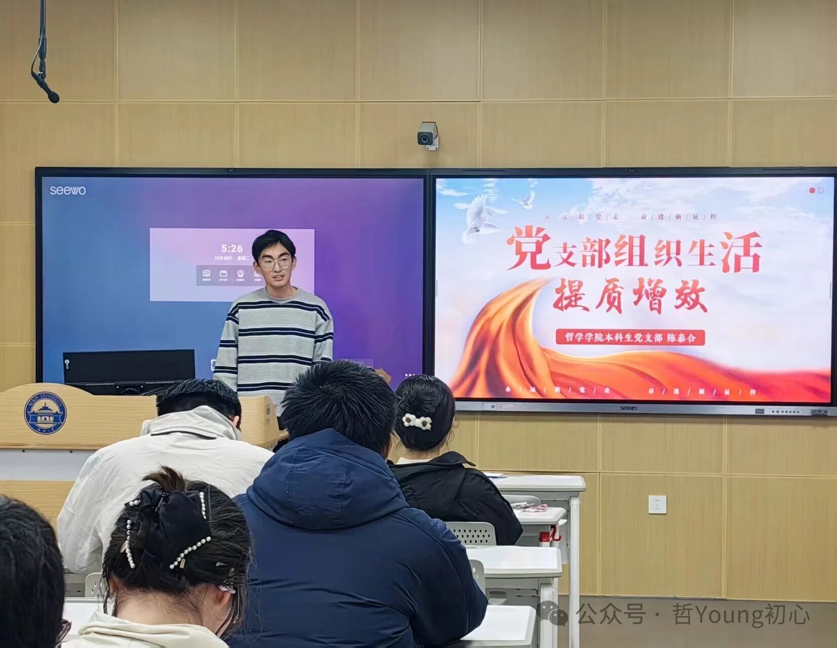 活动伊始,陈泰合在哲学的观察视域中,将党的组织生活与日常生活中的点滴实践紧密联系起来,无论是研究生每周的组会讨论、班级的综合素质测评民主会,还是学生组织的部门例会,都是组织生活在不同领域的体现。而党的组织生活,正是将日常集体活动提高到具有政治原则的高度,使之成为党员明确信仰方向、校准行动偏差、凝聚奋斗力量的重要途径。
