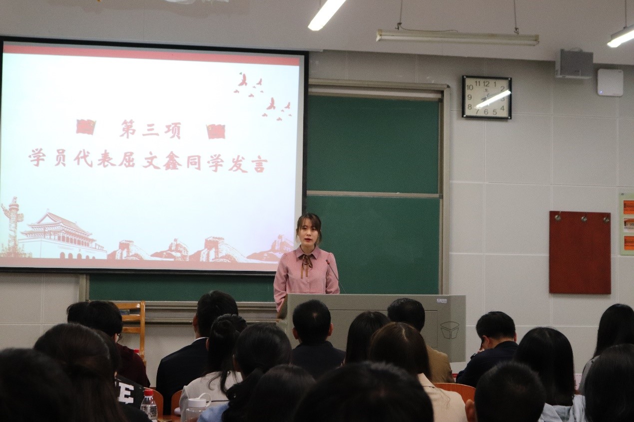 第一分党校督导员周传彪老师向大家介绍了自己督导工作的内容及章法,希望同学们能提高自身政治素养,坚定理想信念,为社会注入更多正能量。