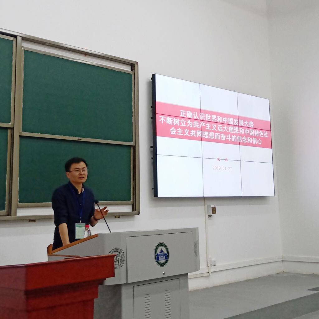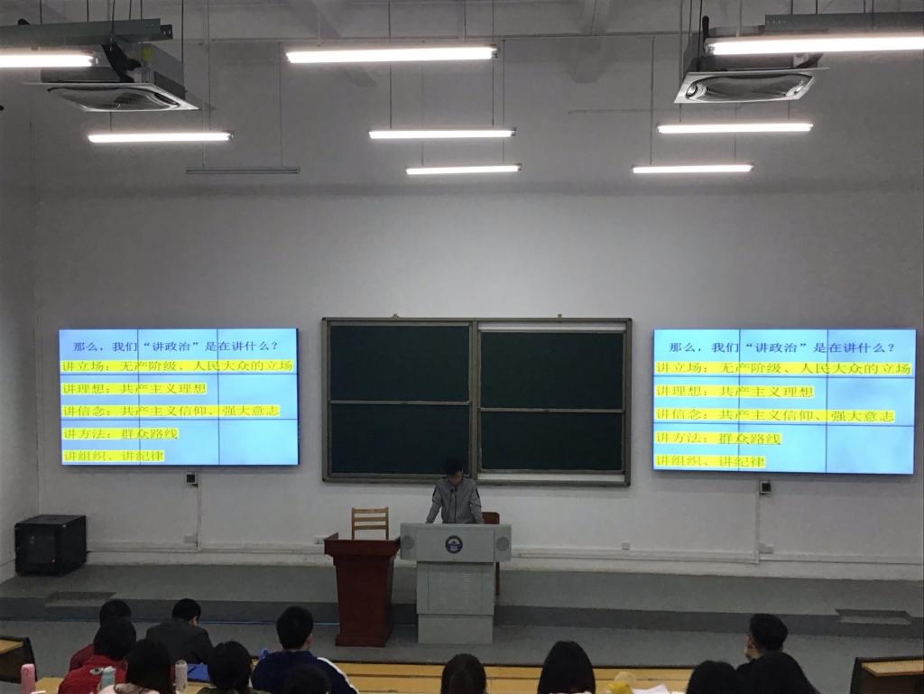 接着由学院党委书记龙滔作了题为“正确认识世界和中国发展大势,不断树立为共产主义远大理想和中国特色社会主义共同理想而奋斗的信念和信心”的理论授课。龙滔书记首先简要讲述了2016年全国高校思想政治工作会议精神中的四个正确认识以及习近平总书记讲话的重点内容。随后,龙滔书记从经济发展大势、社会发展大势、国际格局发展大势三个方面入手,提出了“漫长的16世纪”以来大分流的历史转向了大翻转的历史,科学社会主义在中国焕发出强大的生机和活力,指出了我国社会主义制度的优越性。最后龙滔书记号召全体学员树立崇高的理想,积极向党组织靠拢,为美好未来努力奋斗!