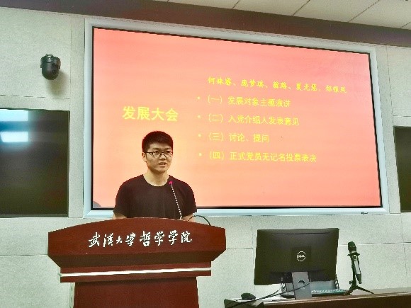 会议的第四项内容是支部大会讨论接收何姝睿等五名同志为中共预备党员。何姝睿、庞梦琪、翁路、夏光慧、郑银凤五位同志分别围绕《大道之行:中国共产党与中国社会主义》《习近平新时代中国特色社会主义思想三十讲》《习近平的七年知青岁月》等书籍以及习近平总书记在纪念五四运动100周年大会上的重要讲话谈了他们的学习感悟,大会接着对接收何姝睿等五名同志为中共预备党员进行逐个讨论。通过正式党员无记名投票表决形成大会决议,通过接收何姝睿等五名同志为中共预备党员。新党员纷纷表示,在纪念五四运动100周年这个特殊的日子里加入中国共产党,对自己是一种极大的鼓励,自己将永远牢记这个光荣的时刻。