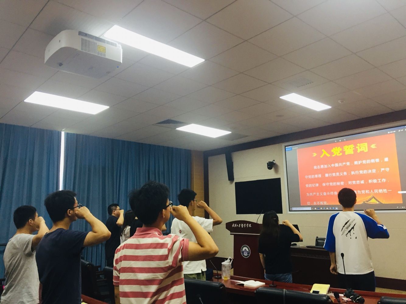 重温入党誓词,激发前行动力。98年来,无数共产党人以坚定的信念、顽强的意志、全部的生命诠释着共产主义信念,践行着入党誓词。会上,支部组织了新党员入党宣誓,老党员重温入党誓词。学思践悟,与会党员还集中学习了《习近平新时代中国特色社会主义思想学习纲要》,开展了更进一步的研讨交流。