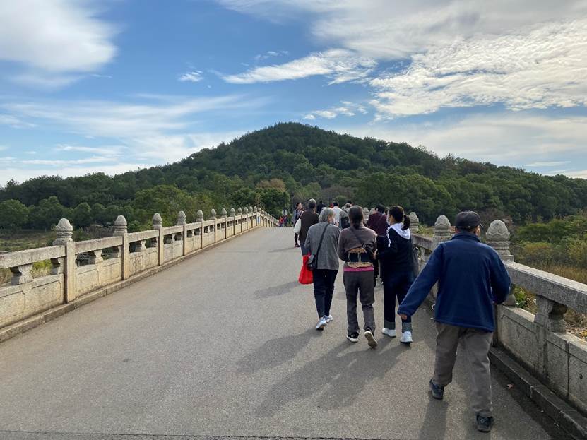 从校园出发大约半个小时,此次秋游的目的地——马鞍山便呈现在眼前。远离了都市的喧嚣,森林公园里有的只是小桥流水、虫鸟和鸣。身处在如此田园诗般的美景中,老同志们放松心情,尽情地在秋高气爽中徜徉。
