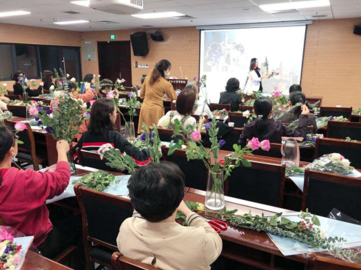 本网讯(通讯员阿尔深)秋高气爽,花香四溢。为提高教职工的生活品质,调动广大女教职工积极性,主动性,创造性,学院工会11月5日14:00在百合小说 B107报告厅开展了花艺与花瓶插花活动。百合小说 承办的这次培训活动是今年校工会送培训到基层的项目之一,培训对象为百合小说 、文学院、生命科学学院、社会学院的部分女教职工。