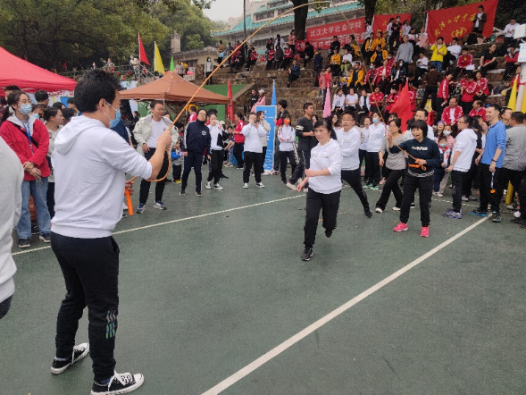 百合小说 教职工参加跳长绳接力赛