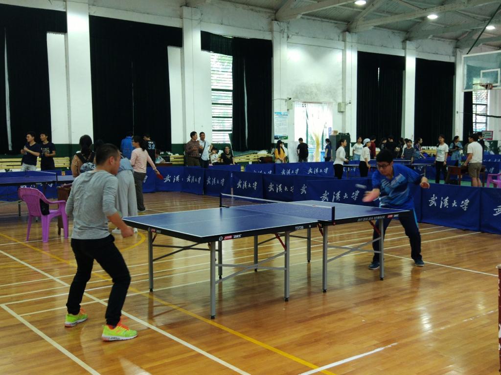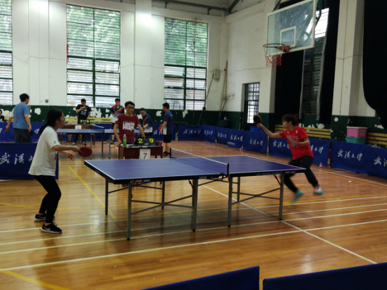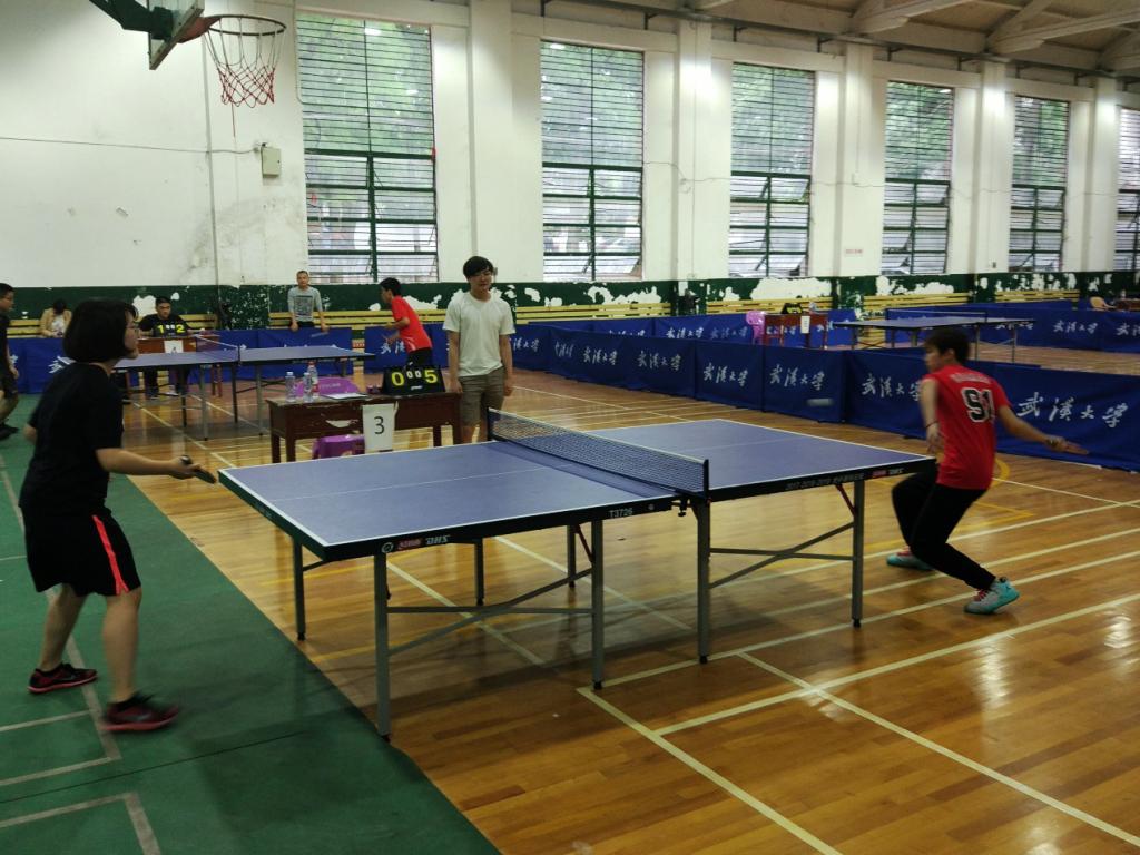 首先是女子单打比赛。第一轮:魏诗妍VS.阮诗斯(测绘遥感信息工程国家重点实验室)