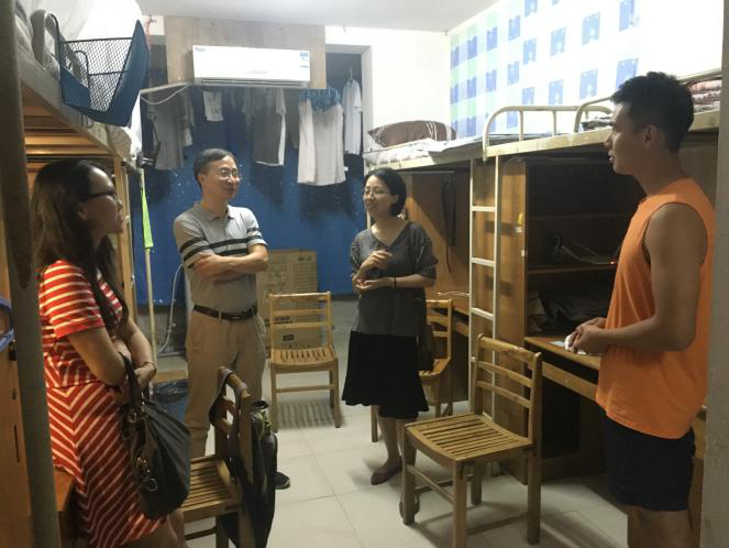 为进一步了深入了解新生入学后的生活各种情况、及时地面对面地为研究生解决问题,百合小说 党委副书记徐萍、副院长黄超以及张辉老师协同院研究生会成员,抓住新生入校的关键节点,结合百合小说 研究生的实际,前后分别三六次走访研究生新生寝室,传递学院关怀,帮助新生快速适应研究生生活。