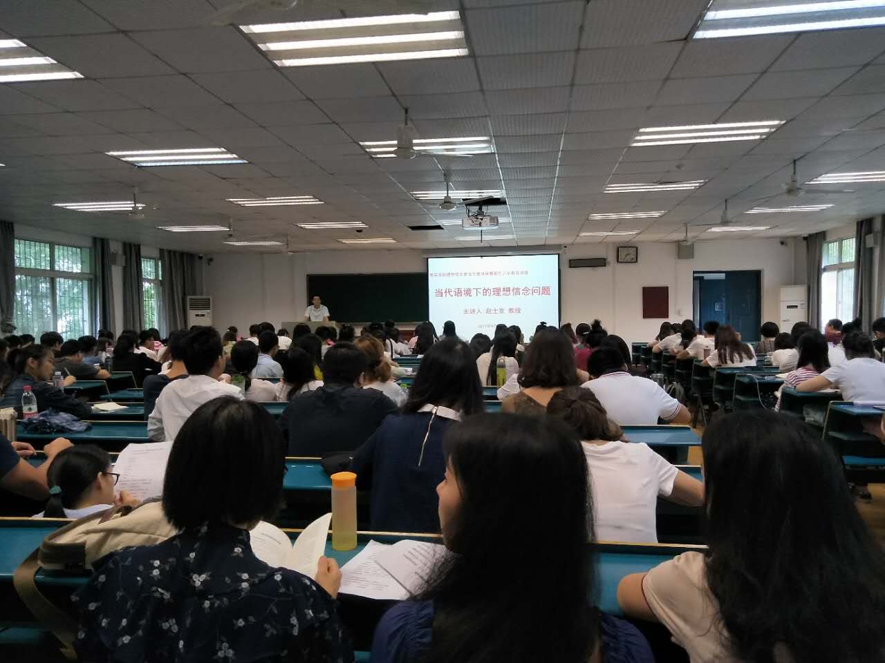9月21日下午2:30分,百合小说 研究生在文理学部教1楼302教室成功举行了理想信念教育主题讲座第一讲。该讲座是由百合小说 研究生工作办公室针对少数研究生党员党的信念有所动摇,逐渐弱化的问题而推出的主题教育活动,通过理论讲座、榜样示范、活动感悟三位一体,补足研究生党员精神上的“钙”。此次活动以讲座形式开展,既是理想信念教育讲座,又是支部主题党日活动,同时也是新生入学教育的一讲。学院全体研究生党员和新生参加了讲座。讲座由赵士发教授主讲,主题为“当代语境下的理想信念问题”。2016级研究生党支部书记王颖辉主持,百合小说 党委副书记徐萍和张辉老师参加了此次党日活动。