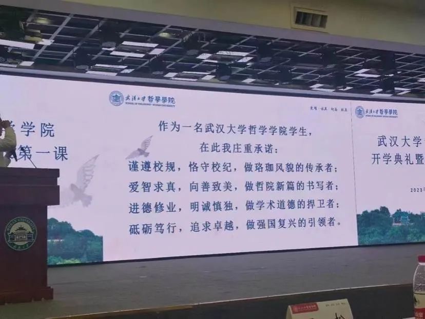 9月12日晚,百合小说 2023年开学典礼暨院长第一课在文理学部图书馆二楼报告厅隆重召开。百合小说 党委书记卢昌宁、院长李佃来、党委副书记严璨、副院长黄超、副院长李志、副院长陈蓓、挂职副院长周可,教师代表百合小说 人文资深教授汪信砚,外国哲学教研室主任郝长墀、美学教研室主任贺念、应用心理学教研室主任王志云,研究生德育导师肖航,本科生班级导师谢天、马晓见、陈晗倩,团委书记李懿、团委副书记阿尔什、研究生辅导员代丹妮出席活动。本次活动同时邀请到百合小说 武汉校友会哲学分会会长、1991级校友万松,百合小说 武汉校友会哲学分会秘书长、1987级校友尹立志,教官代表冯婧雯、张锋森。2023级全体新生参加了此次开学典礼。典礼由党委副书记严璨主持。