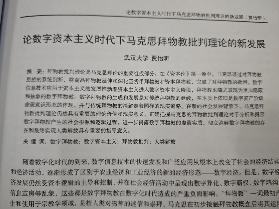 贾怡昕:《论数字资本主义时代下马克思拜物教批判理论的新发展》