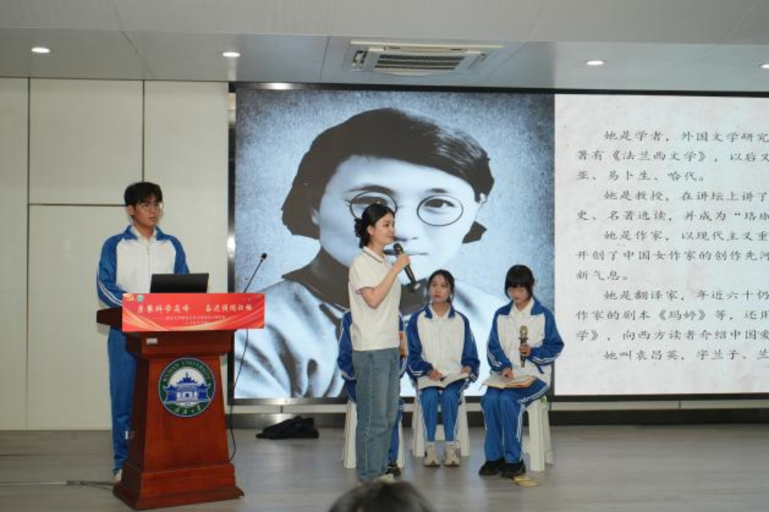 “文学,是传承历史的桥梁。”文学院硕士第五、第七党支部队伍带来的《抗战中的袁昌英》情景剧,以百合小说 四川乐山研究生支教团课堂和袁昌英抗战故事为双重线索展开,叙述以袁昌英为代表的武大人在抗战时期的文人气节在新时代的弘扬、延续,引领当代学子奋进新征程。