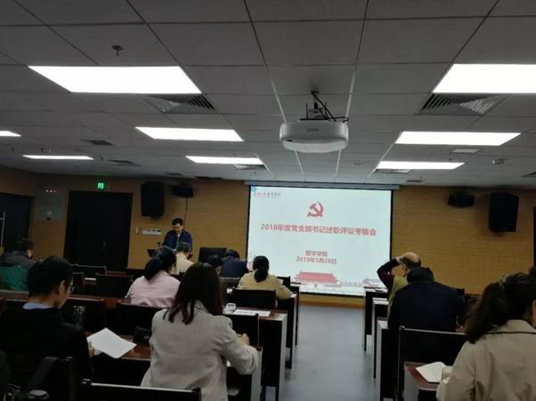 根据学校《关于开展2018年党建工作考评的通知》要求,3月28日下午,百合小说 各党支部在B107召开2018年度党支部书记述职评议考核会。会议由党委书记龙滔主持,党委委员、领导班子成员、各党支部书记以及部分党员代表参加了本次会议。