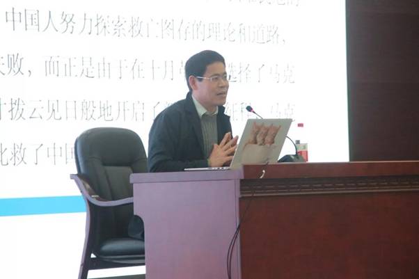 李佃来教授首先以“为什么要用一个德国人所创造的理论指导中国”发问,引起了在座同学的好奇与思考,然后结合我国具体国情,将马克思主义对中国的影响分为三个阶段进行了详细分析。革命年代,在山河破碎、国难民危的历史关口,在无数仁人志士努力探索救亡图存之法却相继失败的窘迫境地,正是选择了马克思主义才拨云见日般地开启了中国革命新的征程;新中国成立后、改革开放前,社会主义道路在根据马克思主义进行设计的时候,它解决的最关键问题之一就是确认平等这一社会价值取向;改革开放后,马克思主义对我国以市场化转型为核心特征的社会变革产生了深刻影响。