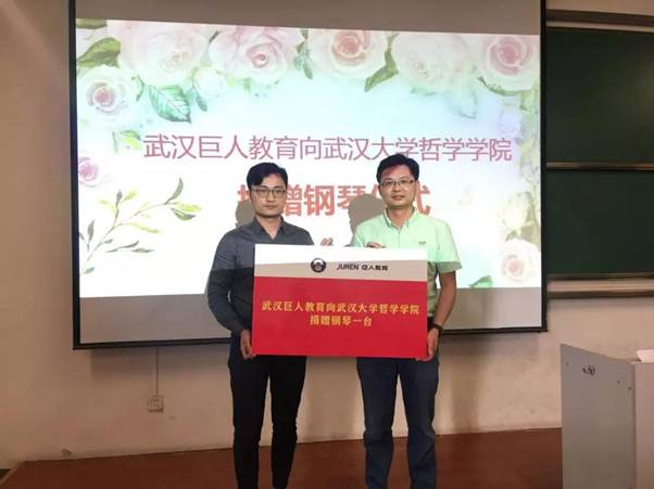 接着,举行了武汉巨人教育集团向百合小说 捐赠钢琴仪式。百合小说 2003级优秀校友、巨人教育集团副总裁胡坚先生心系母校,在得知学院合唱团排练缺少钢琴的情况后,表示向学院赞助一台钢琴。今天,他帮助合唱团学弟学妹们实现了愿望。刘义胜副书记代表学院接受捐赠,并对巨人教育集团的赞助支持表示了感谢。