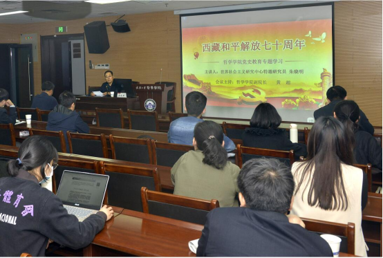 最后,黄超副院长对朱晓明研究员带来的精彩讲座表示感谢,并对本次讲座进行了总结。黄超副院长认为本次讲座内容详实、史料丰富,既有助于本院师生对西藏和平解放有一个更深刻、更系统认识,同时也有助于培养师生的爱国主义情怀。希望在座学生都能发挥共产党员的奉献精神,投身到祖国需要的地方去,发挥爱国的浪漫主义情怀。