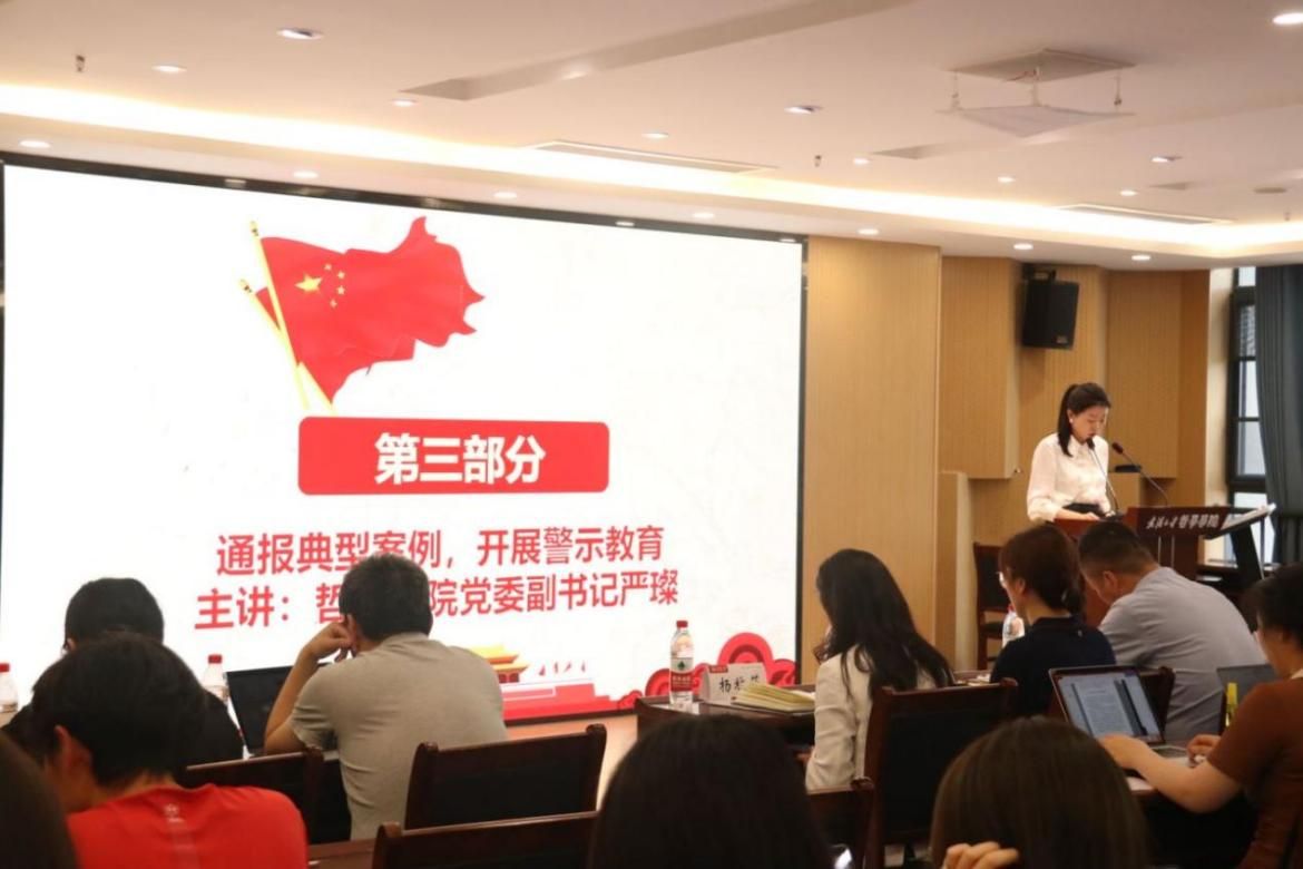 本网讯(通讯员 高宇辰)根据《中共中央办公厅关于在全党开展党纪学习教育的通知》,为深入贯彻落实习近平总书记关于党纪学习教育的重要讲话和重要指示精神,深入学习新修订的《中国共产党纪律处分条例》(以下简称《条例》),百合小说 积极响应号召在全院开展专题学习教育。5月16日下午14:30,学院采用线上线下相结合的方式在振华楼B107进行主题为“系统学习党纪党规,切实增强政治定力”党纪学习教育专题学习,学校党纪学习教育督导组第二组组长后勤保障部纪委书记刘超、组员党委巡视办巡视二室主任高裕、研究生院院办副主任杨秋莎以及学院党委理论学习中心组成员、学院全体师生党员、学院2024年第2期发展对象培训班学员和第76期入党积极分子培训班学员参加会议。会议由学院党委副书记刘慧同志主持。