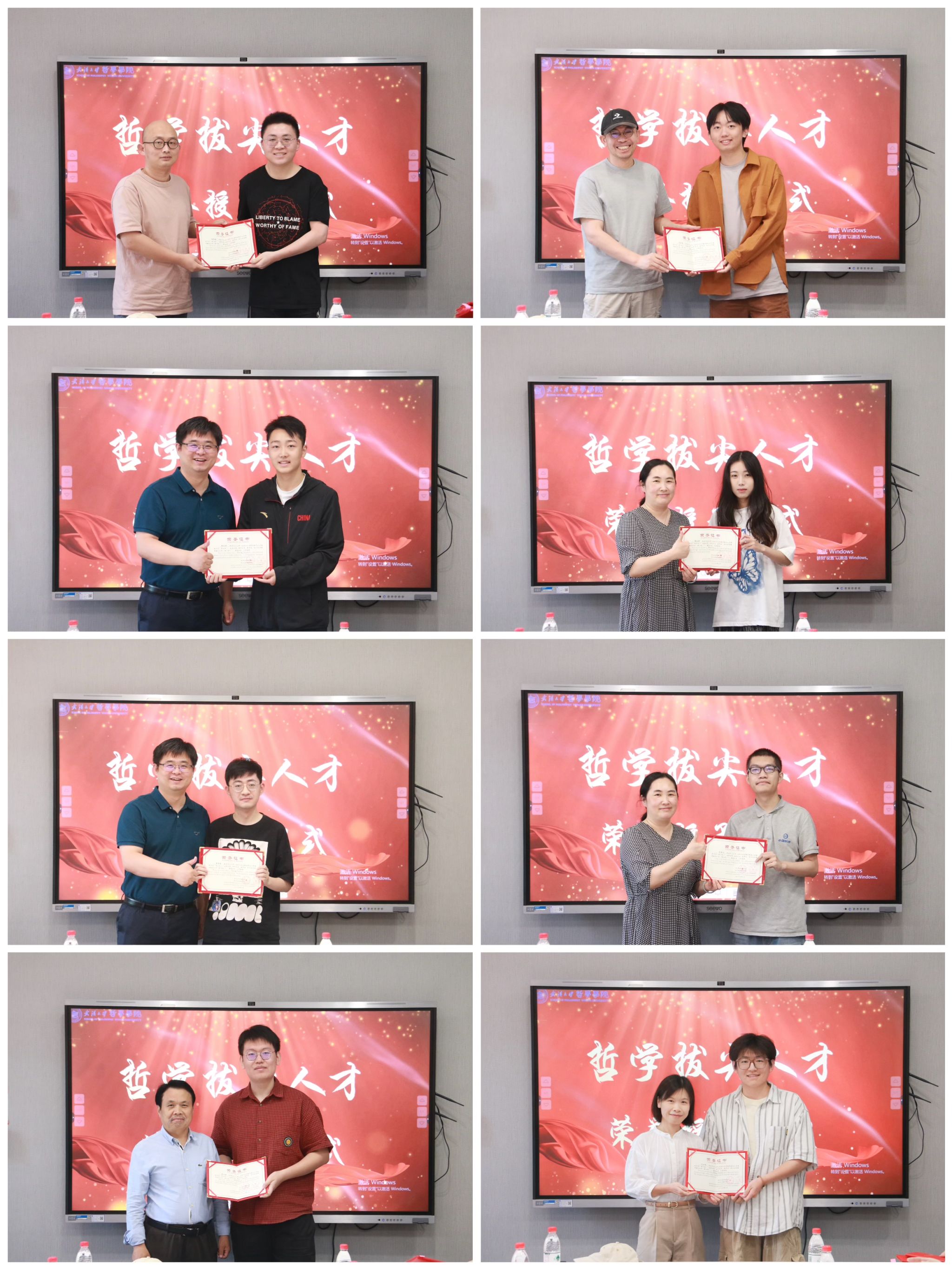 在荣誉证书授予仪式中,哲学拔尖人才计划学业导师们分别为完成哲学拔尖人才培养计划的同学们颁发荣誉证书。