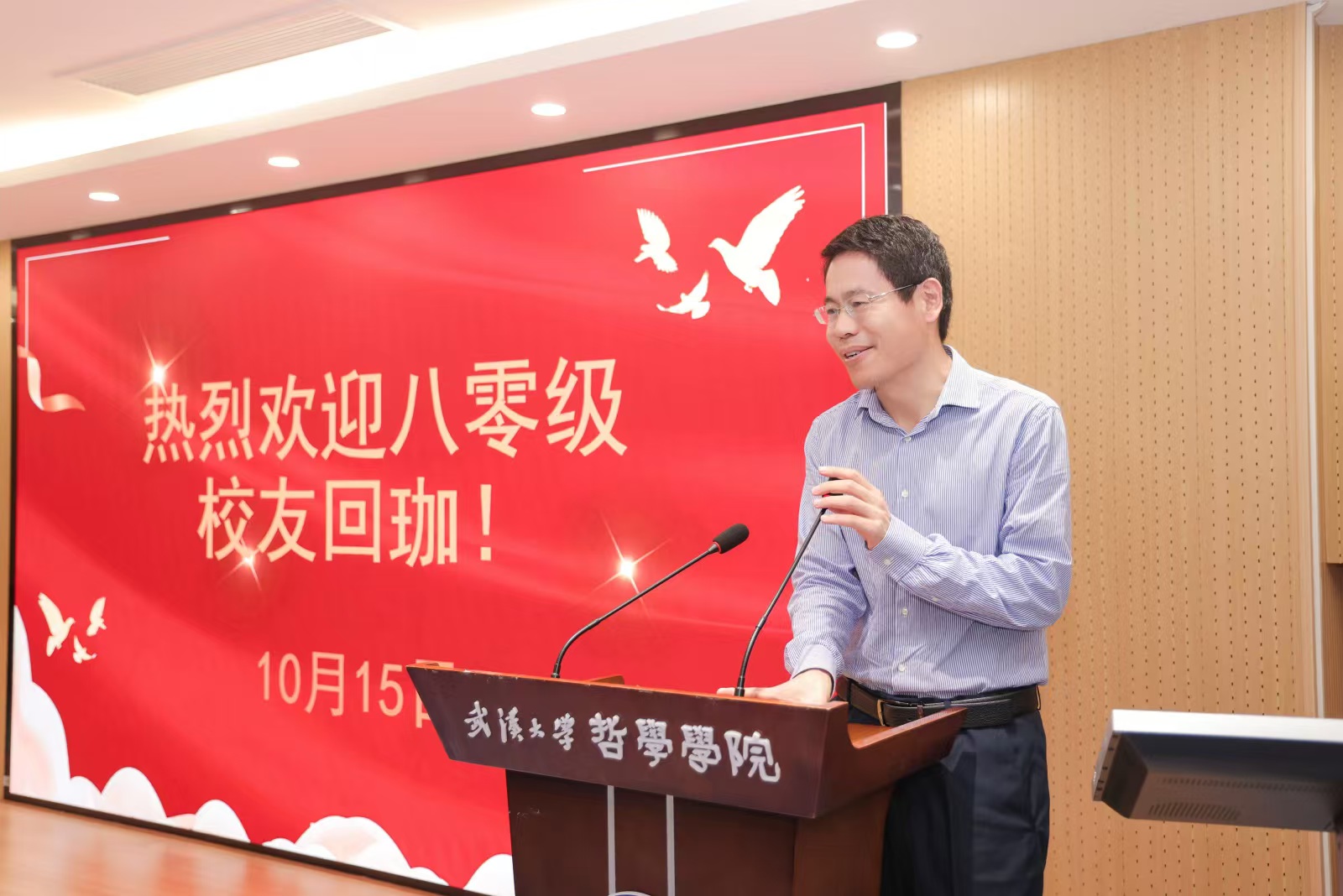 原中国南方电网公司董事、党组副书记、1980级校友史正江作为组织者,他满怀深情介绍了活动筹备及安排,并简要介绍了与会校友在学界、商界、政界及各行各业的情况。他指出,每一位校友的故事都是对母校精神的传承与发扬,更是武汉大学辉煌历史的一部分,希望校友们在此次活动中交流思想,共勉共进。
