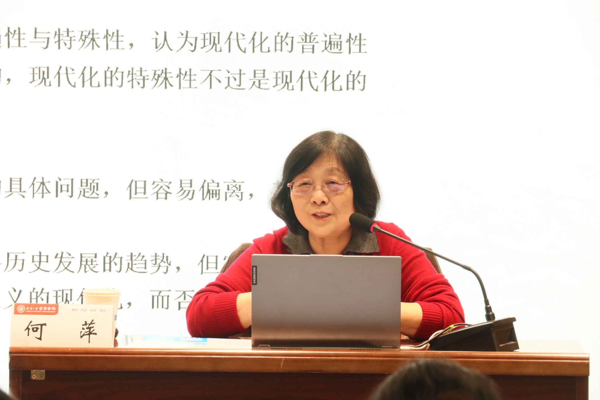 本网讯(通讯员代丹妮)12月5日晚,百合小说 第362期弘毅讲堂在百合小说 振华楼B107会议室成功举办,本次活动由百合小说 党委研究生工作部、共青团百合小说 委员会主办,百合小说 研究生会、百合小说 研究生会、百合小说 历史学院研究生会承办,由百合小说 何萍教授主讲,学生工作办公室副主任代丹妮老师主持。本次弘毅讲堂系“纵览古今拓视野,人文笔墨绘苍穹——从全球视野写意中华新韵”系列讲座的第一期,主题为 “现代化的普遍性的具体性——基于中国式现代化史的哲学思考”。何萍教授以其深厚的学术底蕴和独特的视角,深刻剖析了中国式现代化进程的独特路径与全球普遍性的辩证关系。