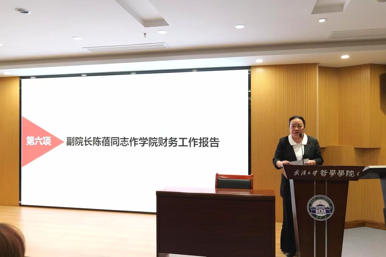 副院长陈蓓提交了哲学学院2024 年度财务工作报告,系统总结了2024年学院财务工作成效,提出了2025年将围绕学院深化改革总体要求,进一步提升财务管理水平,为学院事业高质量发展提供有力支撑。