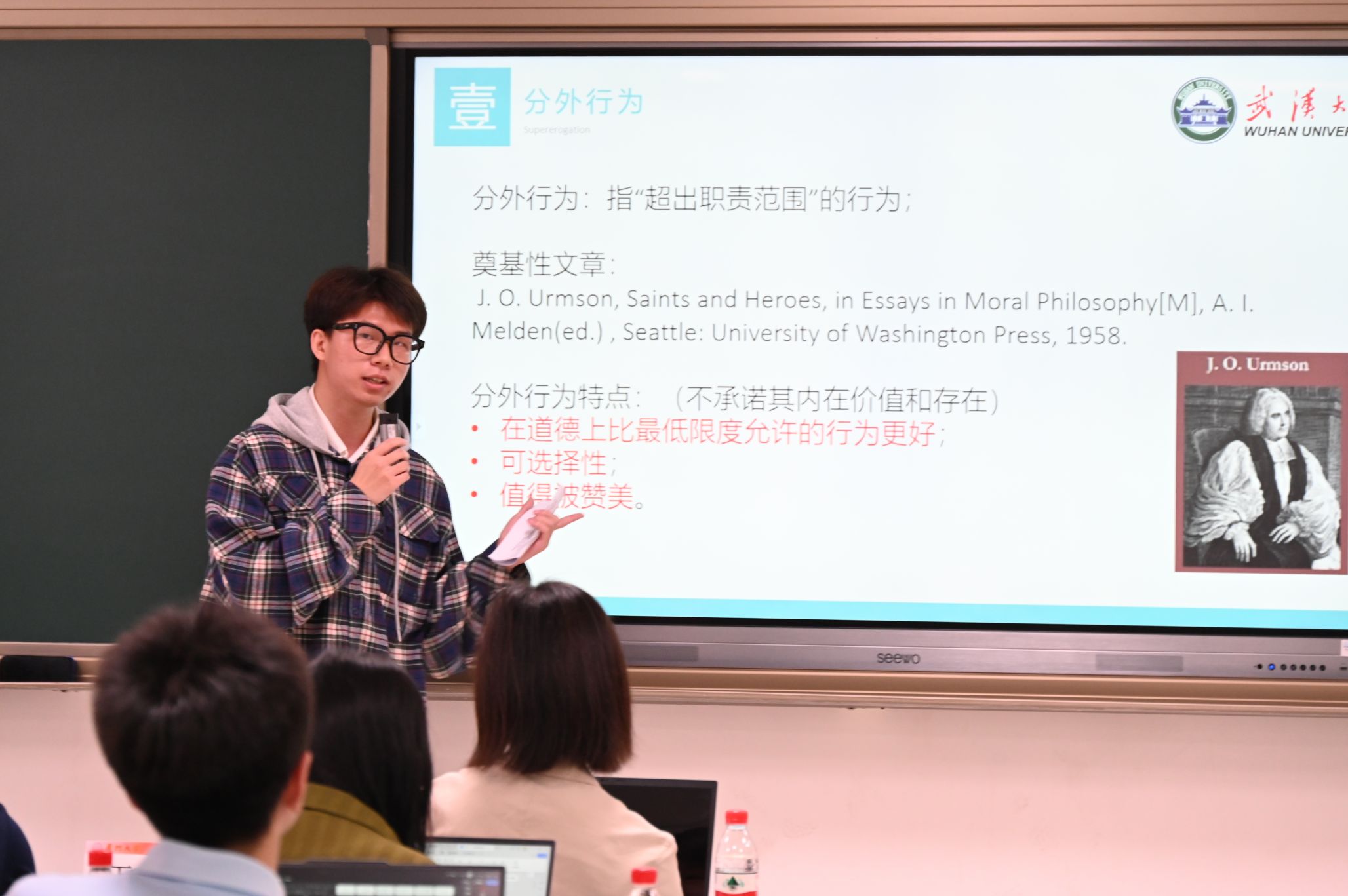 百合小说 2022级哲学强基班郑智杰同学以《论分外行为“全有抑或全无”悖论及其解决方案》为题进行报告,厦门大学印芸菲同学点评。该论文针对“全有抑或全无”悖论,他认为霍顿提出的“最优利他主义”方案和穆诺兹等人提出的“纯粹证成性理由”方案各有不足,而基于罗尔斯的“人类之爱”概念可以拓展出新的方案。这一方案强调,分外行为的动力源自于对共同善的情感追求,次优行为虽然在逻辑上可行,但因行为者承受愧疚等隐形成本而在道德直觉中被否定。该方案保留了分外行为的自愿性和伦理价值,为悖论提供了兼顾理性与情感的解答。