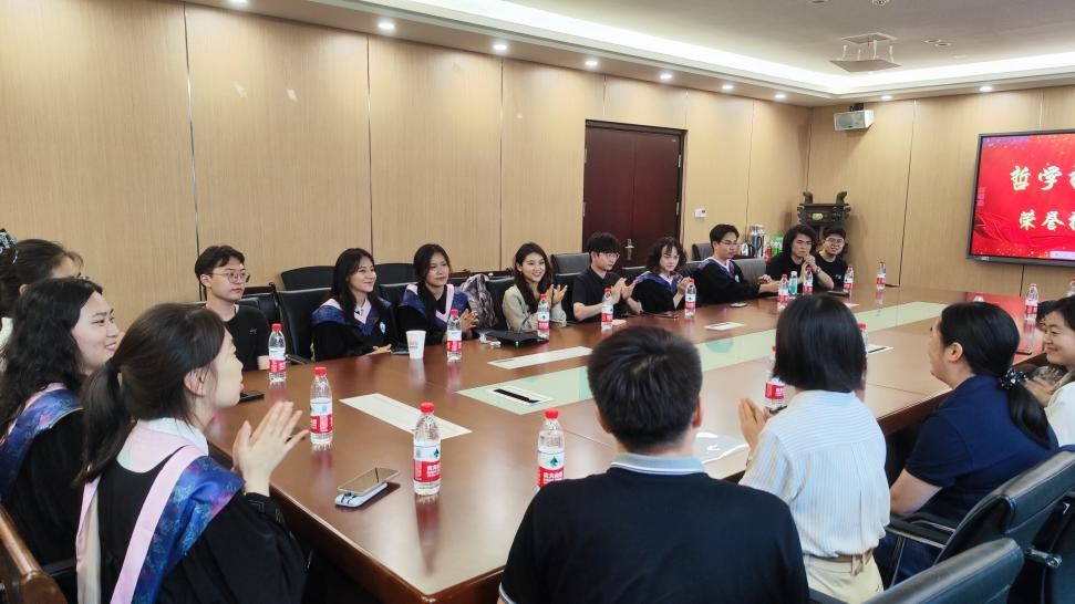 颁发证书仪式结束后,同学们积极发言,分享了自己在哲学拔尖人才培养过程中的成长经历和收获,并表达了对哲学学院、弘毅学堂以及学业导师的感谢。哲学拔尖人才培养通过在学业导师指导下开展专业学习、参与学术研讨会、撰写学年论文以及规划职业前景以及提供更多的国内外学术访问机会,在增进学生学习哲学的兴趣、培养学术规范等方面都有着深刻的影响。最后,与会师生一起合影留念。