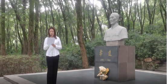 最后是宣誓环节。由马克思主义哲学硕士生党支部书记杨小叶同志领誓,其他所有同志面向党旗和李达老校长雕像庄严宣誓。一句句誓词,铿锵有力,在场的同志都回想起入党时的初心,更加坚定了共产主义的理想信念,在建党百年后的新征程中,在“两个一百年”奋斗目标里,继续书写属于国家民族和自己的未来使命。