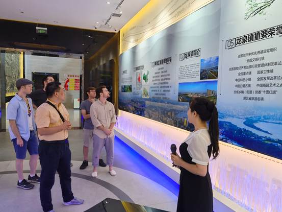 26日,外籍教师一行人参观了中国经济百强镇——宜昌市龙泉镇和中国民营经济百强企业稻花香集团。上午到访了龙泉古镇,龙泉镇规划展览馆,稻花香包装工业园,第五酿造车间和藏酒洞,下午在稻花香集团与龙泉镇领导和稻花香集团领导开展了座谈。座谈会上,中共龙泉镇党委副书记谭华介绍了龙泉镇的经济基础,发展模式,现在如何发展工业,工业如何反哺新农村建设,以及如何开展精准扶贫确保龙泉镇家家户户能够过上小康生活。稻花香集团党委副书记方丽华详细介绍了集团“一主三辅”的产业模式,民营企业如何在国家政策支持下蓬勃发展,以及民营企业在新冠疫情以及近期河南洪灾等国家困难时刻的企业担当。在互动环节,针对外教提出的龙泉镇如何吸引大学生来就业和生活、招聘哪些专业的学生来稻花香集团、看重怎样品质的学生、稻花香集团未来的发展目标等问题,龙泉镇和稻花香集团的代表都给予了详细解答。