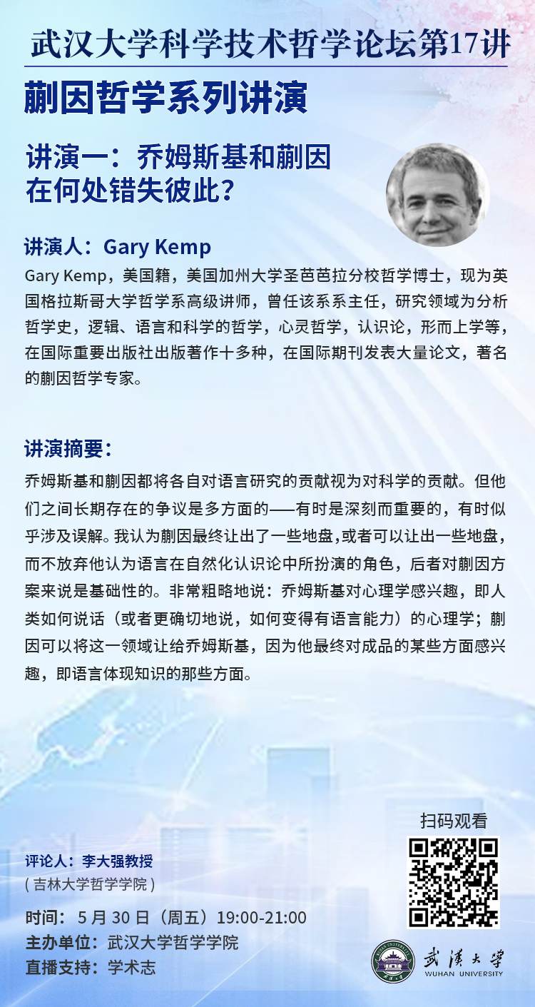 【5月30日】武汉大学科学技术哲学论坛第17讲预告 ▏蒯因哲学系列讲演一:乔姆斯基和蒯因在何处错失彼此?