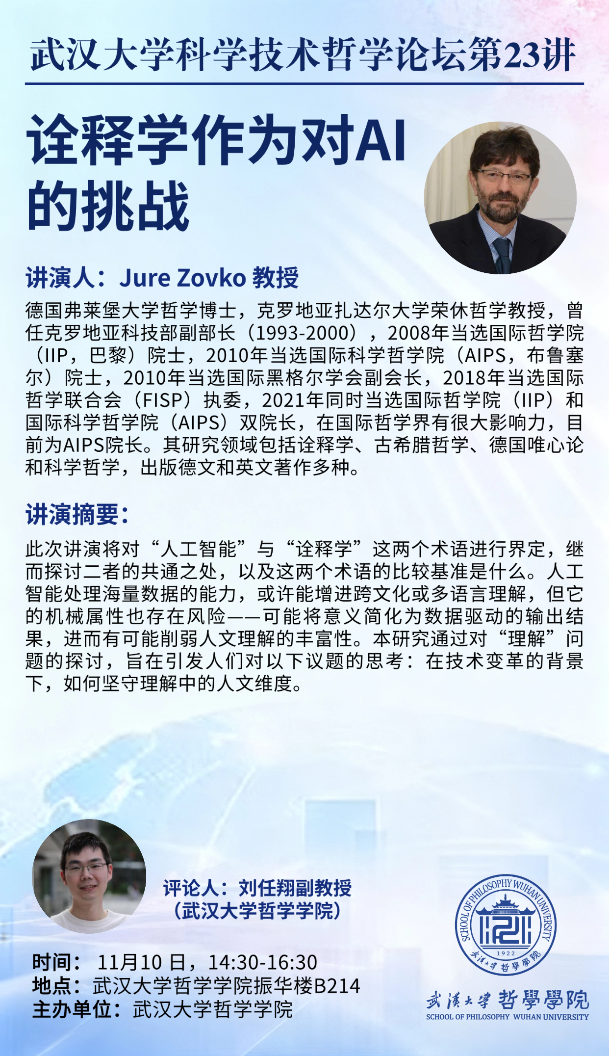 【11月10日】武汉大学科学技术哲学论坛第23讲 ▏Jure Zovko : 诠释学作为对AI的挑战