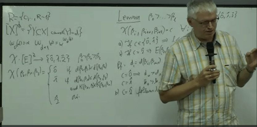 在第三场讲座中,Weiermann教授给出了Paris-Harrington语句不可证性的完整证明。与文献中已有的经典证明不同,Weiermann教授直接在序数标记(ordinal notation)上应用Ramsey理论,以序数的秩为工具,构造了一个巧妙的染色函数,得到了Hardy函数相对于Paris-Harrington函数的有界性。 由下标为ϵ0的Hardy函数非可证递归这一结论得到了Paris-Harrington语句不可证性。