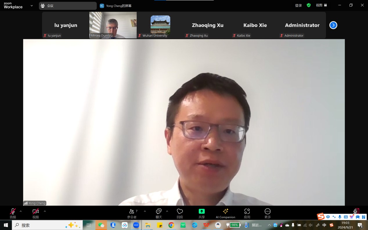 本网讯(通讯员 鲁彦君) 9月21日晚,应武汉大学哲学学院陈波教授邀请,哲学教授、罗马尼亚科学院副院长、欧洲科学院院士,国际哲学院(IIP)院士及前主席,米尔恰·杜米特鲁(Mircea Dumitru)做题为“‘感受到一个证明’:存在像推理现象学这样的东西吗?”的讲座。讲座由武汉大学哲学学院程勇教授主持,四川大学哲学系徐召清副教授评议。来自国内外的110余名听众参与本次线上讲座。
