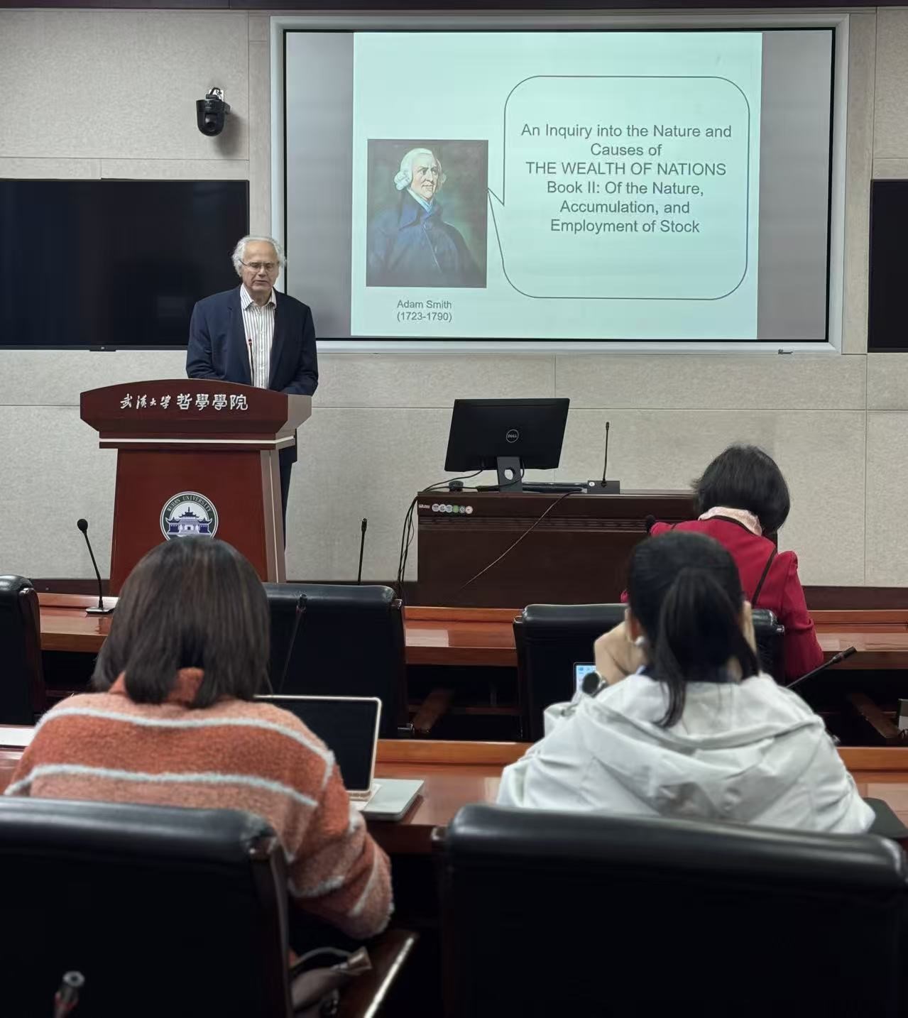 本网讯(通讯员 康晓静)11月16日下午,德国罗莎·卢森堡基金会分析批判研究所资深研究员及学术顾问委员会主席米歇尔·布里教授应邀在武汉大学哲学学院B214作题为“Rosa Luxemburg’s Theory Of Accumulation—The opening of a new perspective on capitalism, imperialism and socialism”的学术讲座。本次讲座由武汉大学哲学学院、武汉大学马克思主义哲学研究所、武汉大学西方马克思主义哲学研究所主办,哲学学院马克思主义哲学教研室主任周可教授主持,吸引众多师生到场参与,现场学术氛围浓厚。