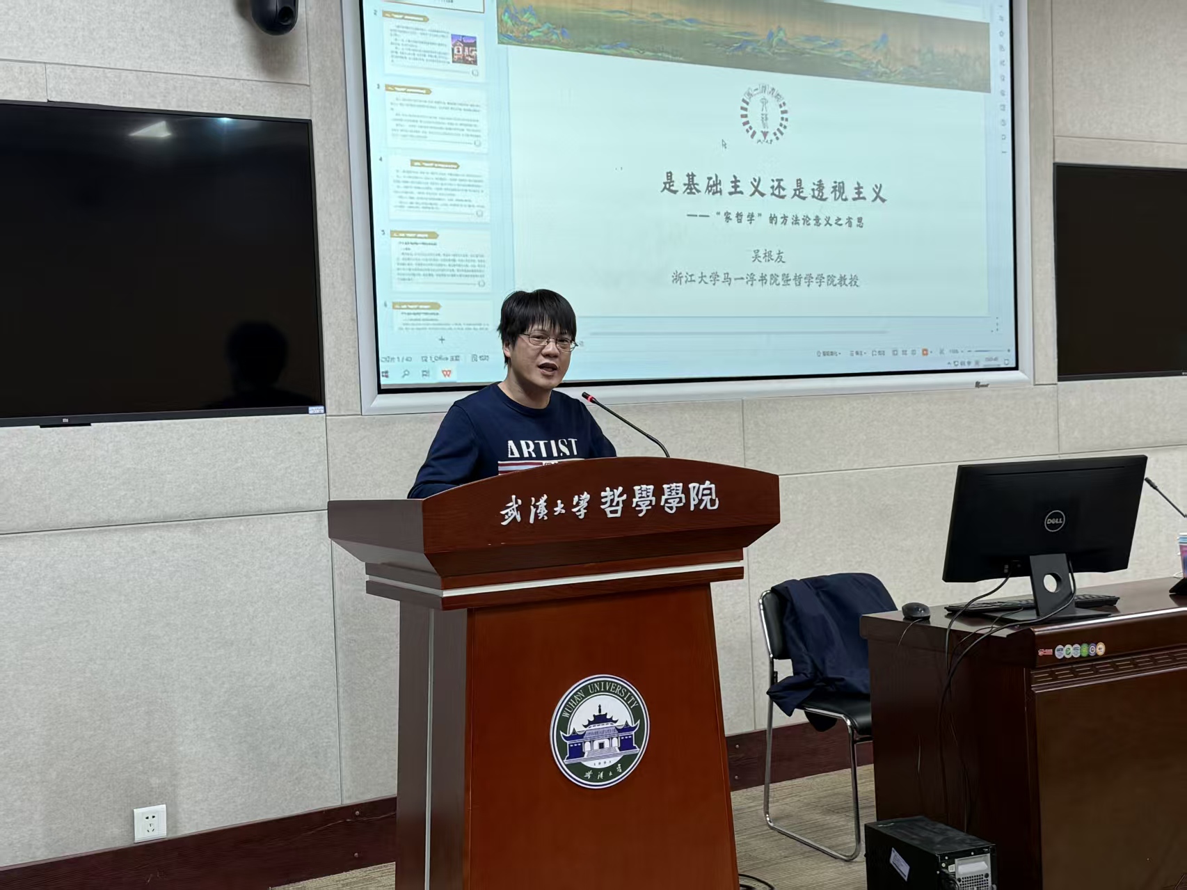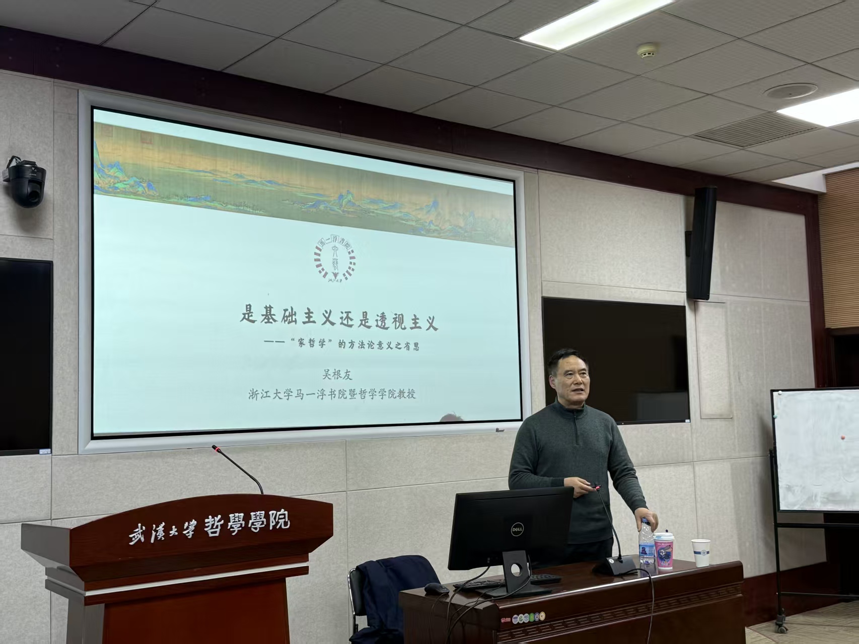 本网讯(通讯员 刘佳源)11月26日下午,浙江大学马一浮书院暨哲学学院吴根友教授应我院邀请,在哲学学院B214报告厅作题为“是基础主义还是透视主义——‘家哲学’的方法论意义之省思”的学术讲座。本次讲座由哲学学院黄燕强副教授主持,李巍教授、贺念副教授、马晓见老师及众多研究生、本科生参加。