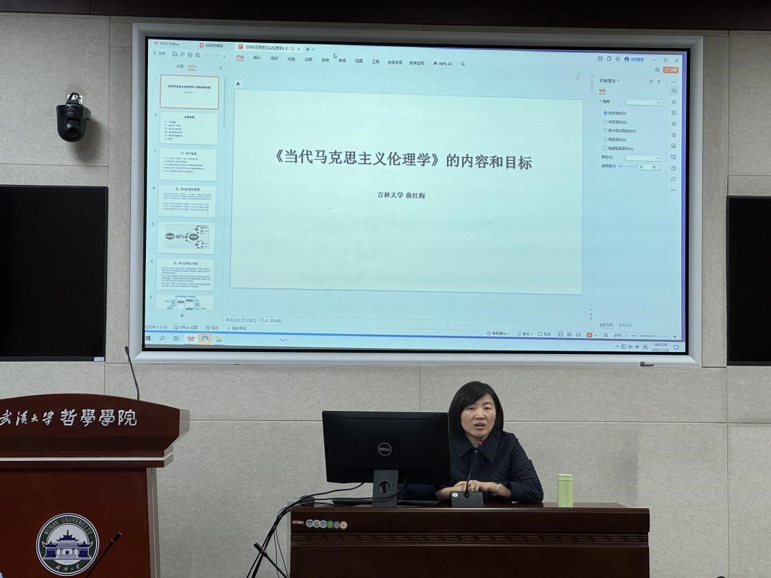 本网讯(通讯员 徐慧慧)12月6日晚,吉林大学哲学系曲红梅教授应邀在哲学学院B214报告厅作题为“《当代马克思主义伦理学》的内容和目标”的学术讲座。本次讲座由哲学学院陈江进教授主持,李志教授与谈,众多研究生、本科生参加。