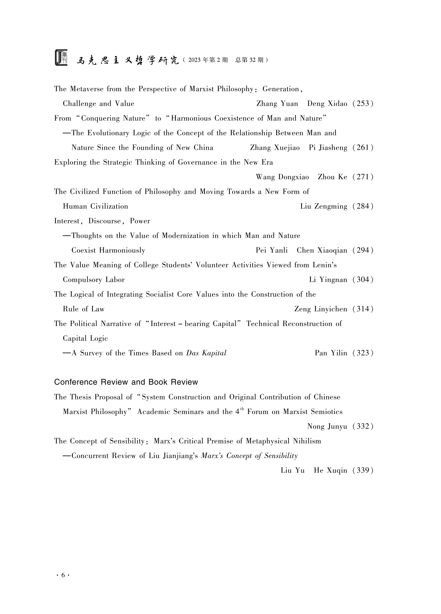 《马克思主义哲学研究》(2023年第2期)