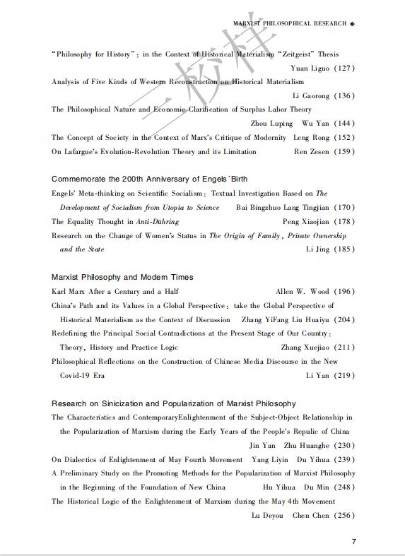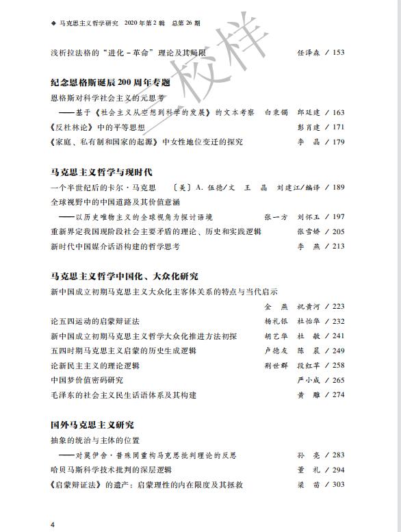 《马克思主义哲学研究》(2020年第2期)