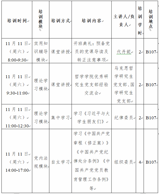 1.遵守培训纪律。预备党员参加培训是党员发展的必备环节。培训期间集中学习活动不得无故缺席,不得迟到早退。请假2个学时以上及出现违纪行为者,将取消培训资格。