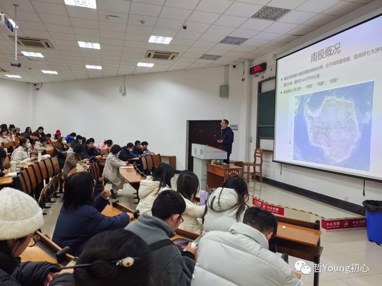 为深入学习习近平总书记给武汉大学参加中国南北极科学考察队师生代表的重要回信精神,深刻理解回信的重要精神内涵和具体实践要求,提高党员同志的政治觉悟和理论素养,12月21日下午,哲学学院本科生党支部组织党员前往计算机学院101教室聆听专题课程。本次课程邀请了张胜凯副教授为党员同志讲授“让五星红旗在南极上空高高飘扬”专题课程,课程由哲学学院党委副书记刘慧主持。